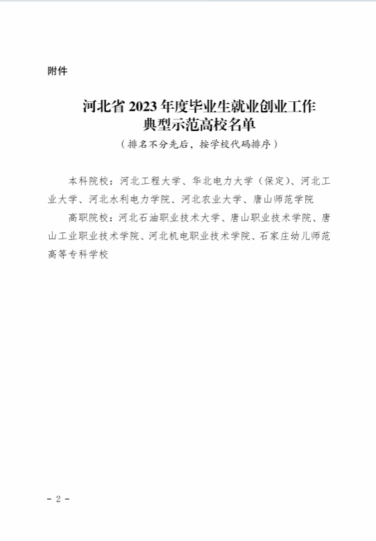 1月11日,河北省教育厅下发《关于公布河北省2023年度毕业生就业创业工作典型示范高校的通知》(冀教学函〔2024〕1号),beat365官网成功获评河北省2023年度毕业生就业创业工作典型示范高校。