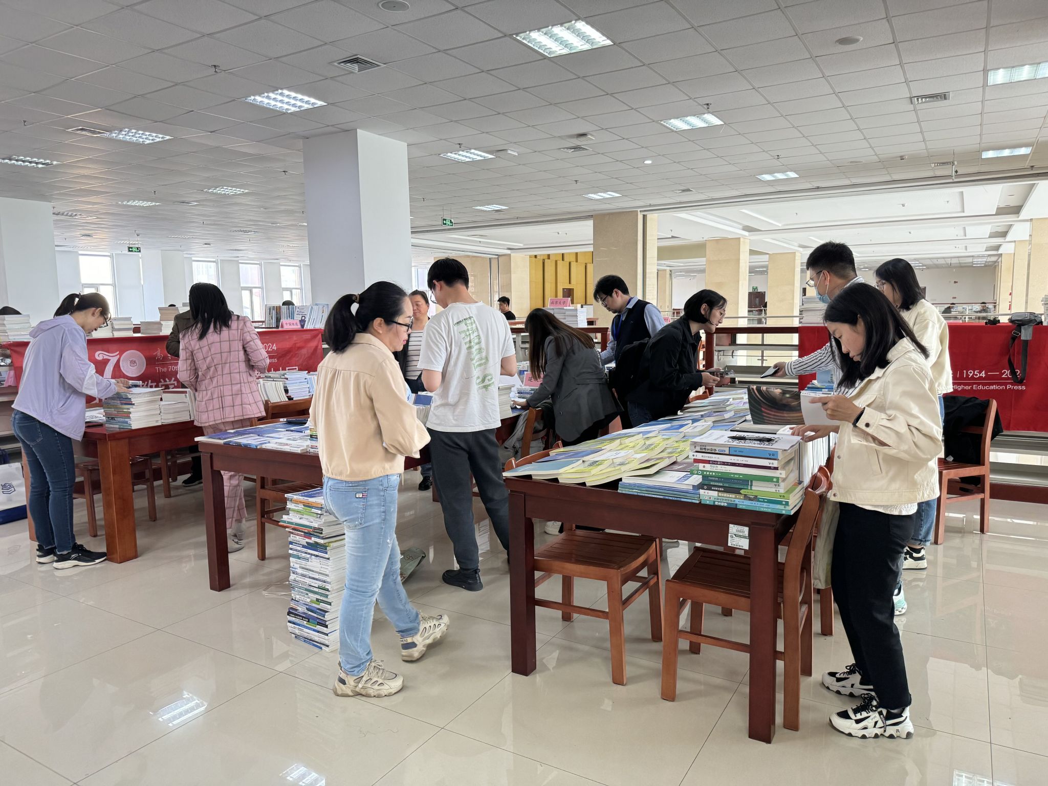 为期一天的教材展示活动中,教师们积极参与,到场阅览并免费申领教材样书,同时与出版社编辑就教材选用、编写、发行等问题进行沟通交流,全面了解相关学科专业最新教材成果。