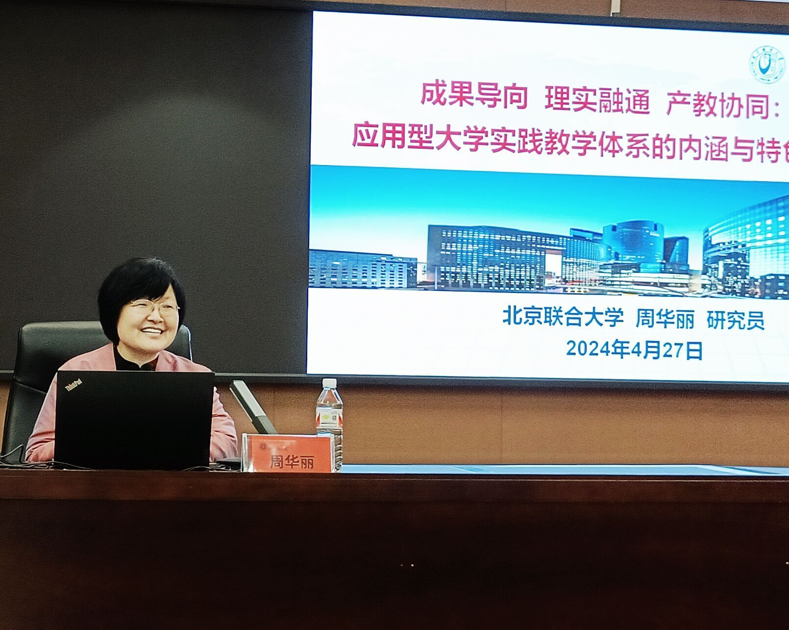 周华丽研究员就“成果导向 理实融通 产教协同:应用型大学实践教学体系的内涵与特色建设”主题,立足应用型大学围绕产教融合、产教协同、成果导向、理实融通,从人才培养方案修订、专业实践教学体系构建、实践教学项目开发、实践教学场景建设、实践教学质量评价五个方面进行了充分的阐述,内容丰富详实、实用性强,为beat365官网当前本科教学工作合格评估、专业建设面临的实际问题、探索产教融合的适配路径明晰了目标,指明了路径。