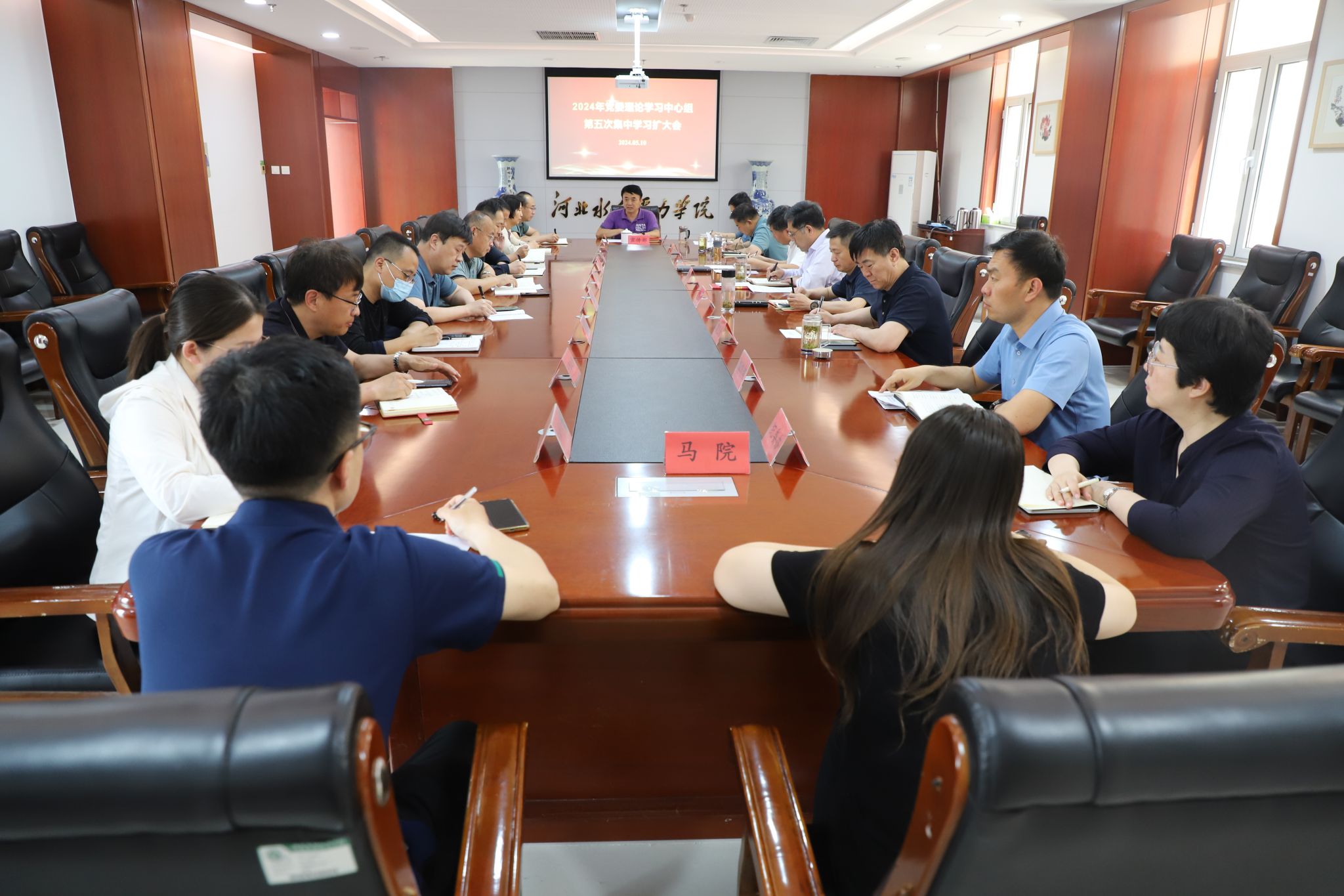 5月10日下午,beat365官网召开2024年党委理论学习中心组第五次集中学习扩大会,认真学习习近平总书记为第六批全国干部学习培训教材所作《序言》以及《中国共产党纪律处分条例》《中华人民共和国保守国家秘密法》。党委书记张效松主持会议并讲话,党委理论学习中心组全体成员参加会议。