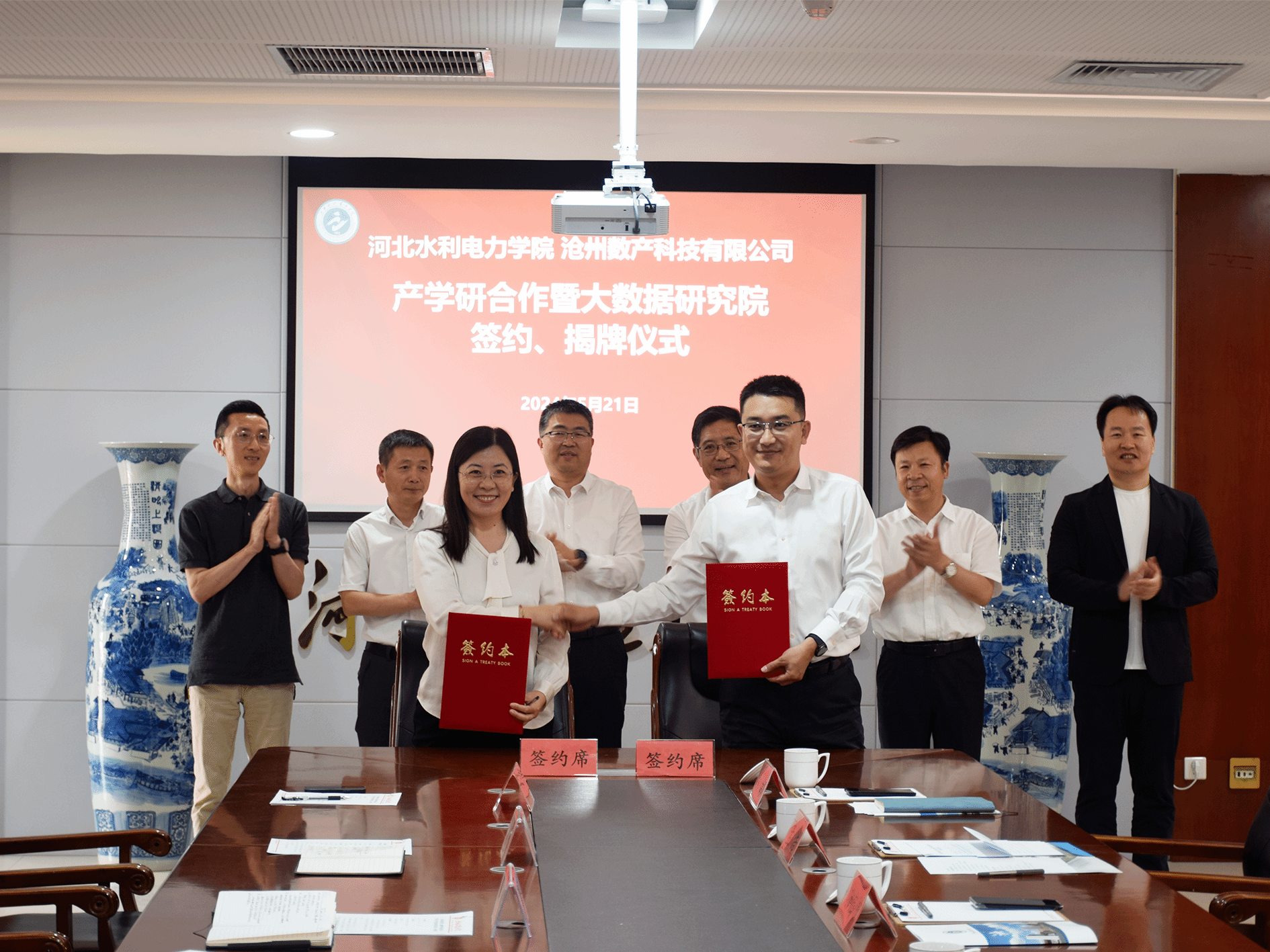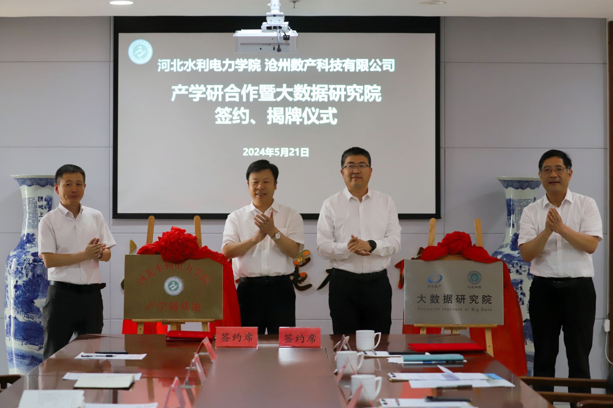 会谈结束后,双方进行了校企合作签约仪式及“大数据研究院”“产学研基地”揭牌仪式。