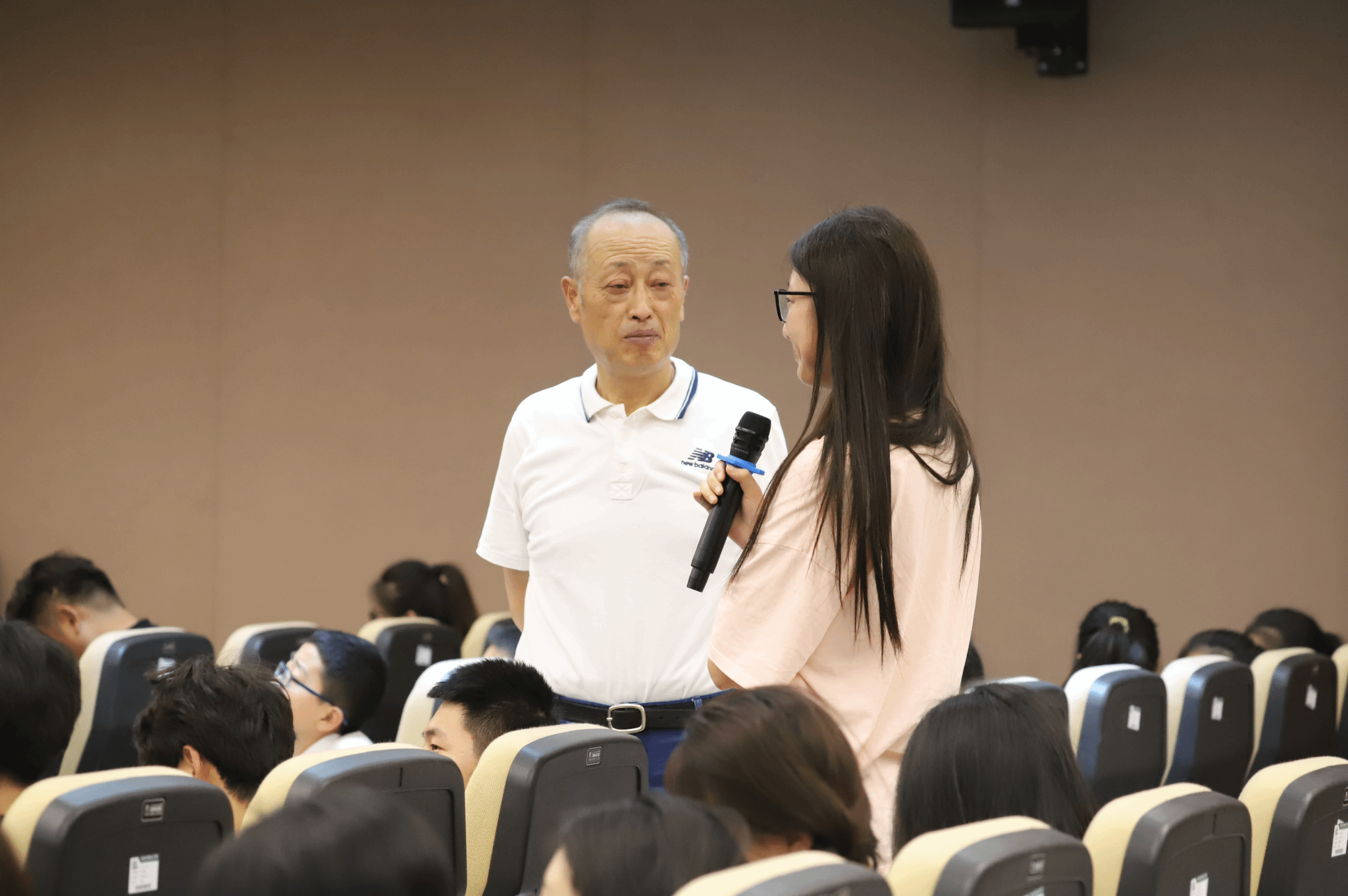 讲座结束后,上海路小学学生代表孙雨洁和beat365官网学生代表舒雪倩上台为国连杰教授献花,表达了对他的敬意和感谢。