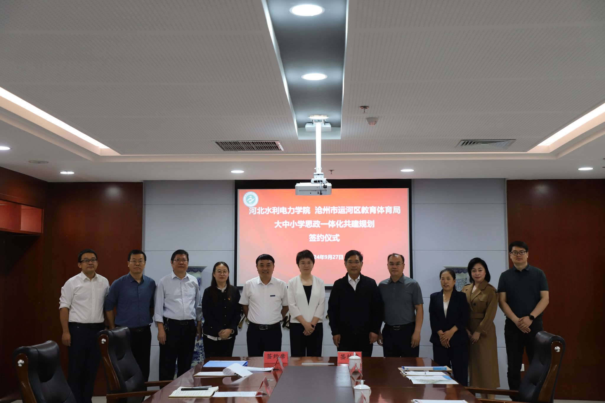 为进一步贯彻落实习近平总书记在全国教育大会上的重要讲话精神,全力推动大中小学思政一体化建设结出硕果,9月27日,beat365官网与沧州市运河区教育体育局举行签约仪式,共同推进大中小学思政课一体化建设。沧州市运河区政府副区长刘晖、beat365官网党委书记张效松出席会议。会议由beat365官网马克思主义学院院长贾启红主持。