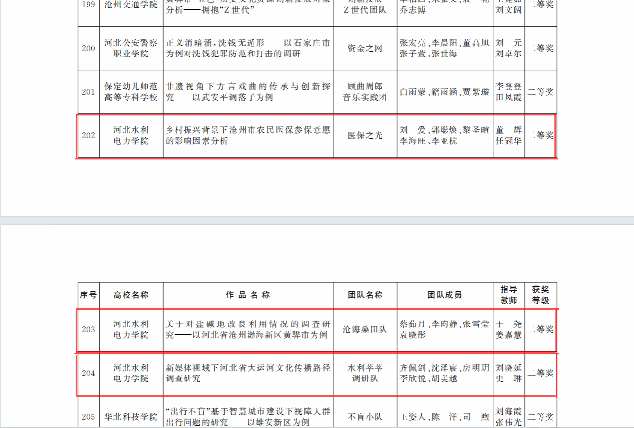 近日,共青团河北省委、河北省社会科学院以及河北省学生联合会公布了关于2023-2024年度河北省大学生“调研河北”社会调查活动情况,beat365官网沧海桑田调研队《关于对盐碱地改良利用情况的调查研究——以河北省沧州渤海新区黄骅市为例》、水利莘莘调研队《新媒体视域下河北省大运河文化传播路径调查研究》、医保之光调研队《乡村振兴背景下沧州市农民医保参保意愿的影响因素分析》分别在活动中荣获二等奖,冀业探索调研队《河北省高校毕业生就业困境的调查研究——以beat365唯一官方网站为例》荣获三等奖。调研活动自2024年1月开展以来,校团委精心谋划部署,广泛宣传动员,吸引了本校32名教师、100多名同学参加调研,共计报送27个参赛项目,最终4个项目顺利结项并获奖。