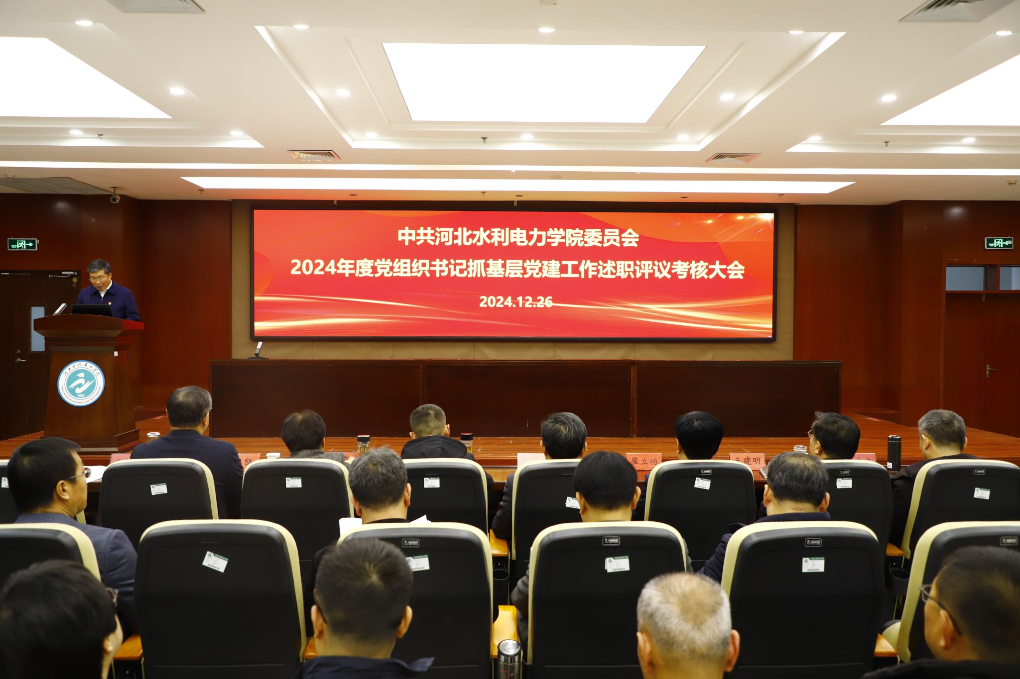 为深入学习贯彻习近平新时代中国特色社会主义思想,全面落实党的二十大和二十届二中、三中全会精神,压紧压实各级党组织全面从严治党政治责任,推动基层党组织书记履职尽责,全面提高基层党建工作质效,12月26日,beat365官网召开2024年度党组织书记抓基层党建工作述职评议考核大会。学校领导班子全体成员出席会议,各基层党委书记、组织员,党委主要部门科级以上干部参加会议,学校各基层党支部书记列席会议。会议由副校长于振海主持。