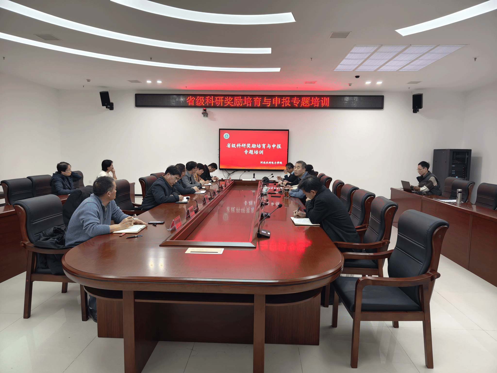董志良首先强调了省级科研奖励对学校发展的重大意义,随后他围绕河北省科技进步奖、河北省社科成果奖等重点奖项,详细讲解了政策导向、申报流程与技巧、申报书的撰写要点等。