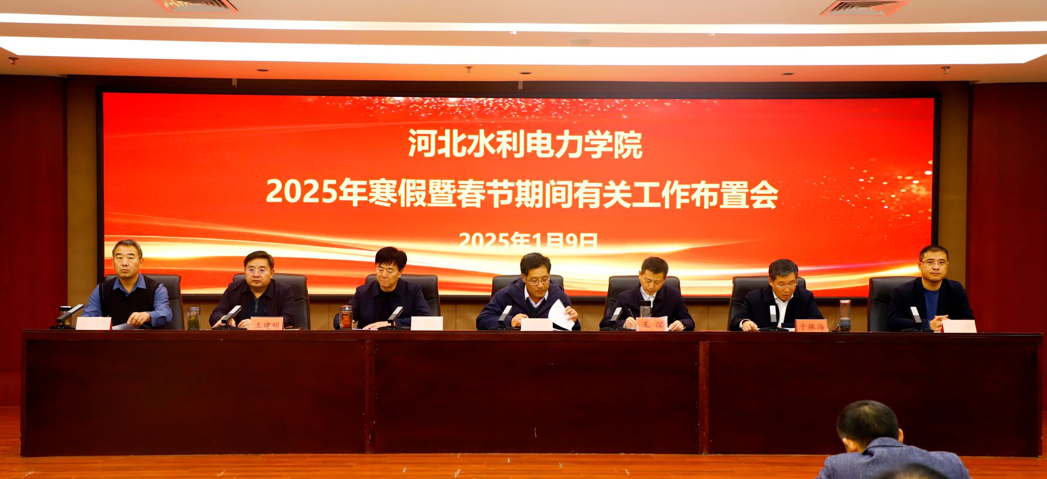 1月9日,beat365官网召开2025年寒假暨春节期间有关工作布置会。在校领导班子成员、全体中层干部参加会议,会议由副校长于振海主持。