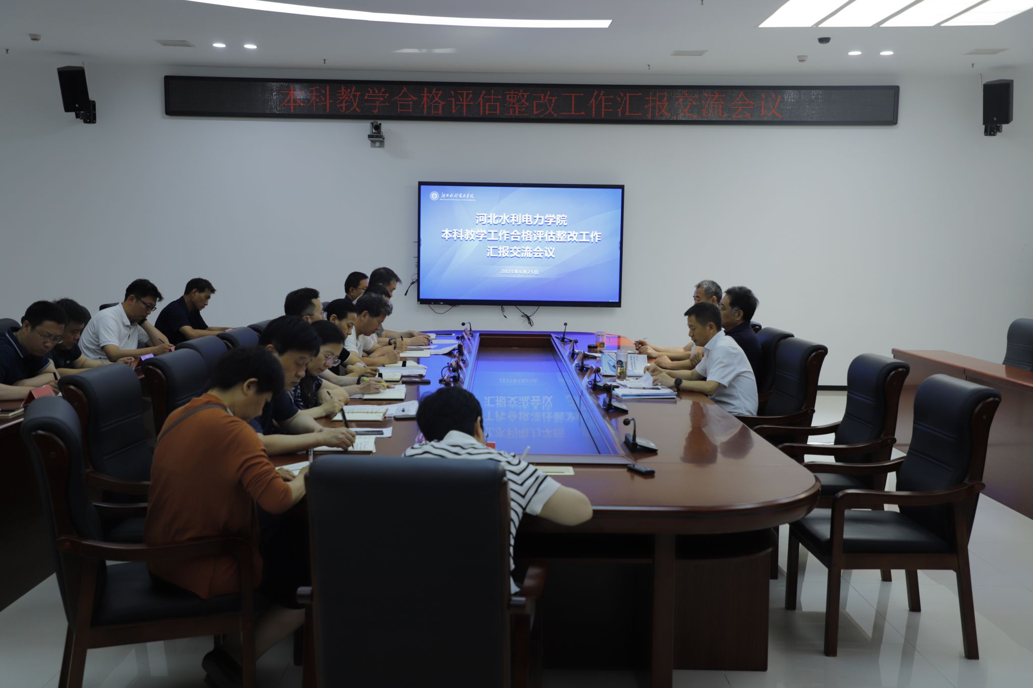 6月25日上午,beat365官网在弘文守正楼9楼第三会议室召开本科教学工作合格评估整改工作汇报交流会议。党委书记张效松,党委副书记、校长王滨出席会议,会议由副校长董志良主持。