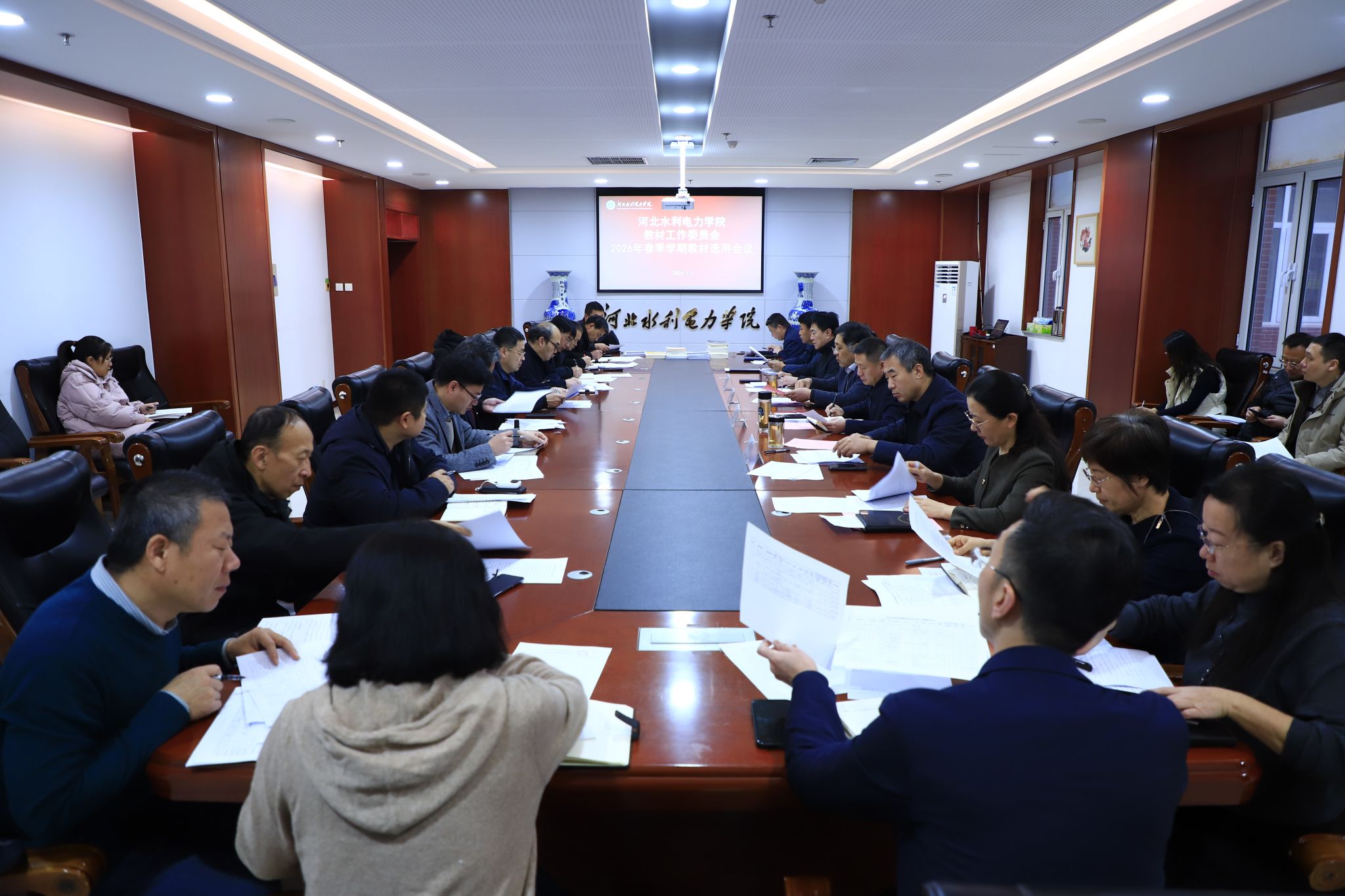 教务处及各教学系部依次对2026年春季学期教材选用情况进行了汇报,会议审议并通过了2026年春季学期教材选用清单。