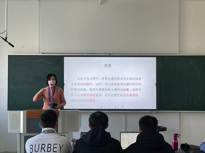 为进一步提升教学质量,充分发挥优秀教师在教学中的引领示范作用,为教师提供一个互相学习、共同提高的平台,提升教师业务水平,计算机系于10月10日组织开展了由孙领弟老师主讲的数据科学与大数据技术专业课程《Python程序设计》教学观摩活动,计算机系全体教师参加。孙老师教学大纲、授课计划、教案等教学资料齐全,她首先带领学生学习了函数的基本定义方式和调用方式,通过实际案例由浅入深进行讲解,在介绍圆周率利用递归算法编程过程中,穿插介绍了我国古代科技文化,激发学生爱国情怀。孙领弟老师,利用多媒体授课,字迹工整,条理清晰,所授重点、难点逐一标注。老师们在观摩后纷纷表示,孙老师授课准备充分,注重前后知识点的衔接,课堂互动效果好,教学做一体,对学生实践能力快速提高有非常大的帮助。