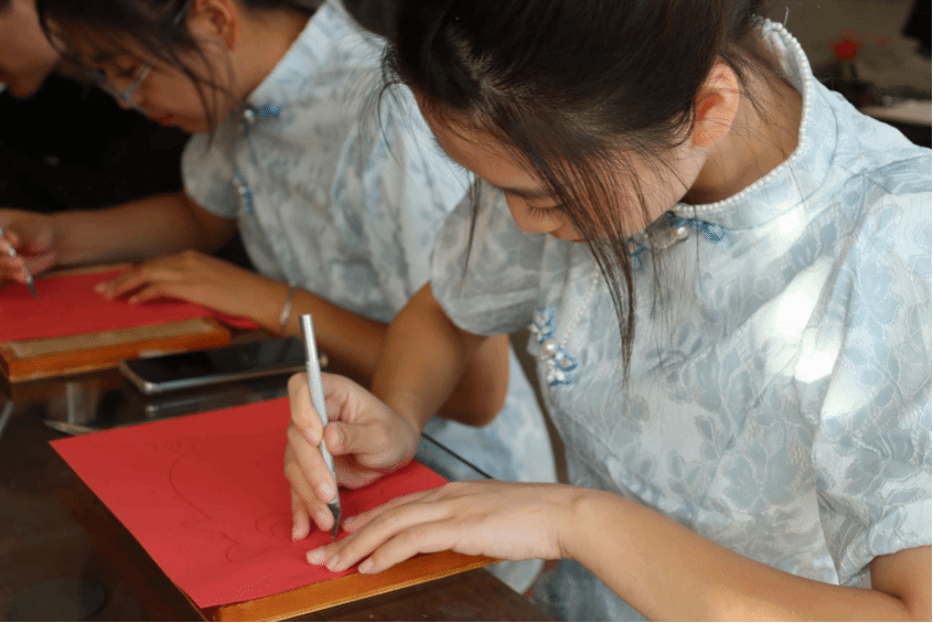 为进一步增强大学生对中华优秀非物质文化遗产所承载的历史与文化价值的认知和认同,开拓眼界,提升审美素养,同时更好地传承和发扬中华优秀“非遗”文化,10月上旬,院团委书记路维、团委老师杨洪泽、王圣洁带领同学们来到了beat365唯一官方网站美育实践基地“沧州市非遗传习所”学习刻纸。非遗传习所所长马振领为大家讲述了刻纸的由来,并且细心教给同学们的入门技巧。