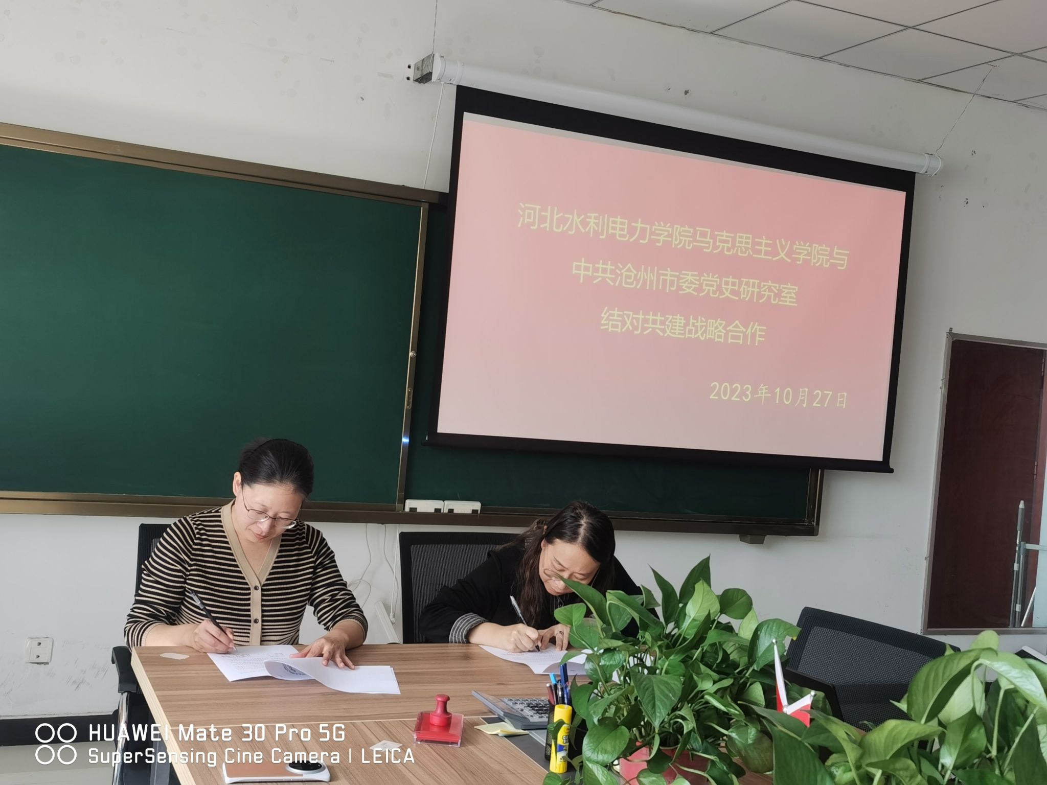 10月27日下午,中共沧州市委党史研究室代表莅临beat365官网参加马克思主义学院与中共沧州市委党史研究室开展结对共建签约仪式,院长贾启红,副院长崔政代表马克思主义学院参加了本次签约仪式。