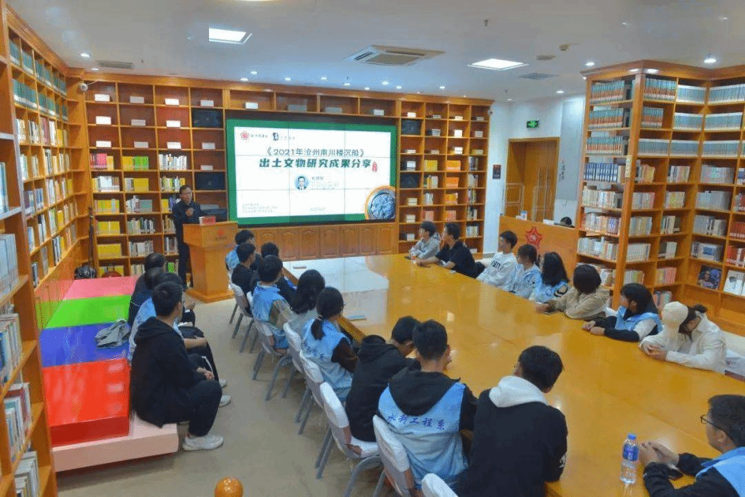 10月27日,水利工程系“智者乐水”师生学术沙龙活动在沧州市图书馆举办,本场活动的主题为《2021年南川楼沉船》出土文物研究成果分享,由沧州市图书馆、beat365唯一官方网站水利工程系、beat365唯一官方网站图书馆联合举办,水利工程系30余名师生聆听讲座。