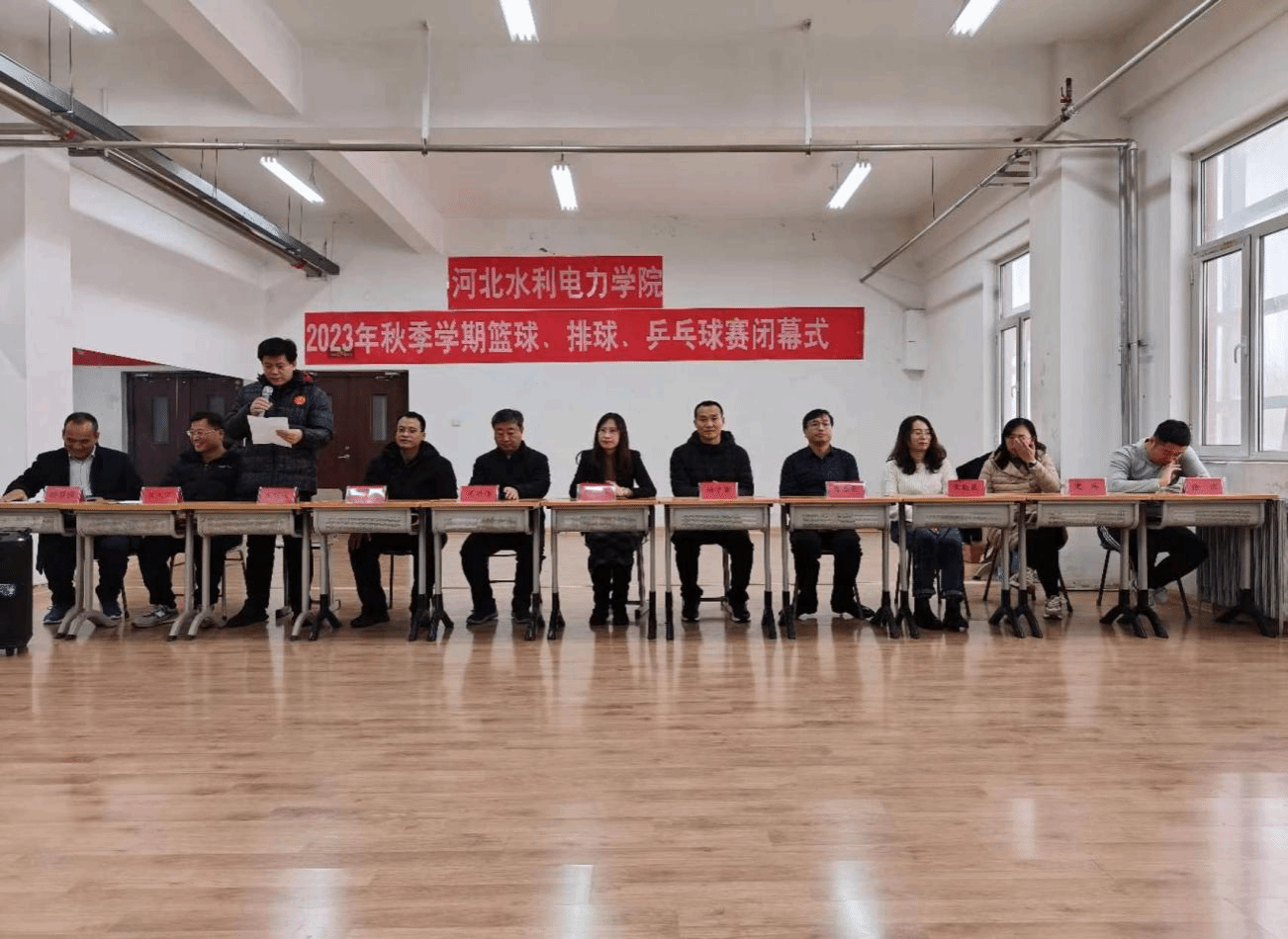 经过数月的激烈角逐,beat365官网2023年秋季学期篮球、排球、乒乓球比赛于12月14日圆满结束。体育教学部、校团委、各系的相关领导及参赛队员代表参加了闭幕式。