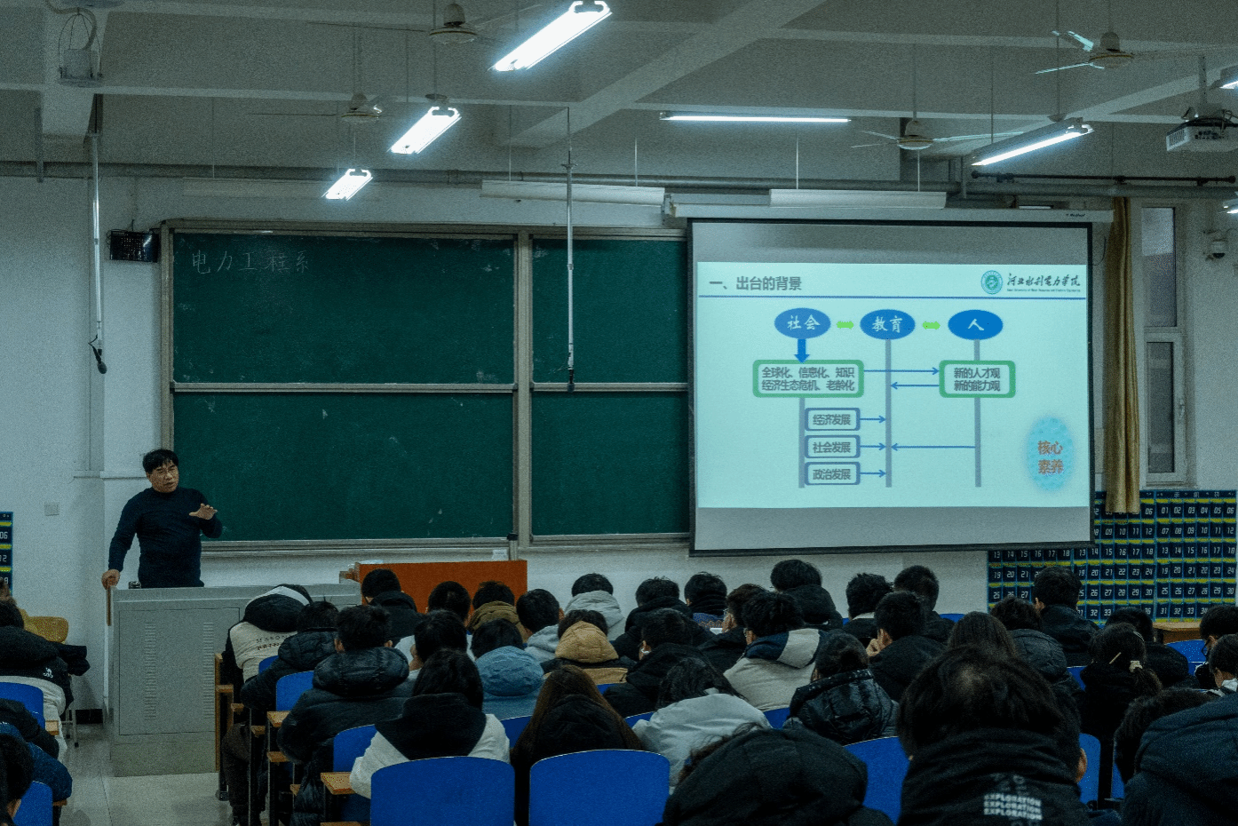 为提高大学生的综合素质,培养创新能力,为学生的成长和发展提供有力的支持和指导,12月13日下午,电力工程系主任李文才于创新楼101教室举办主题为“当代大学生发展的核心素养”的讲座活动。