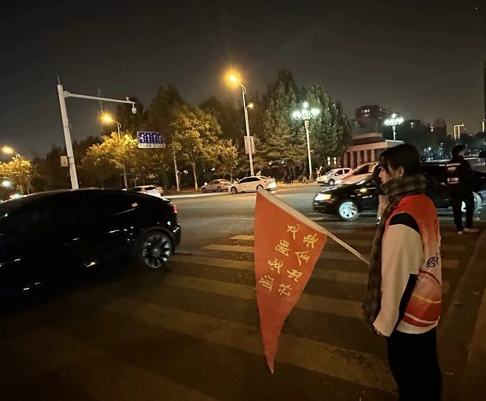 志愿者们于中午11:45-12:15和晚上17:30-18:00两个出行高峰时段,在beat365官网西门口马路东西两侧及中间绿化带通道位置进行维护交通秩序志愿服务。大家手持红旗,认真协助交警维护好交通秩序,劝阻行人和非机动车严格遵守交通规则,并及时制止行人乱穿马路、违规翻越护栏等不文明行为,指挥同学有序安全过马路。同时,对于执行区域内存在的不文明、不卫生问题,志愿者进行了垃圾收纳和清理清扫,为维护道路畅通做出了积极贡献。