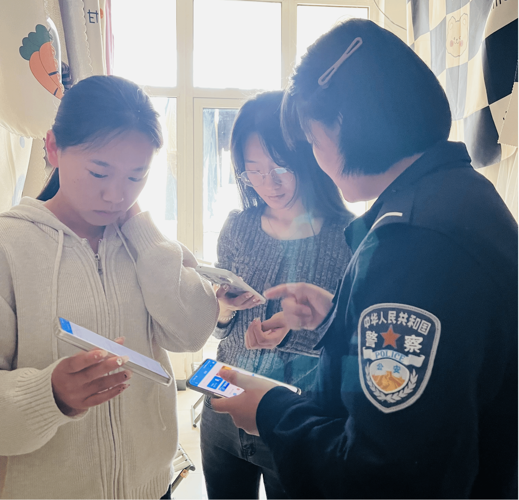 刘警官带领民警们深入学生公寓指导学生们安装注册“国家反诈中心APP”,宣传反诈知识,并通过现场互动的形式让学生们了解与自身学习生活息息相关的诈骗陷阱,指导学生们如何识别骗局。民警们还向同学们介绍了公安局长信箱的注册和使用方法,同学们可以随时通过公安局长信箱进行业务咨询、事项求助、线索举报、反映情况、建言献策。