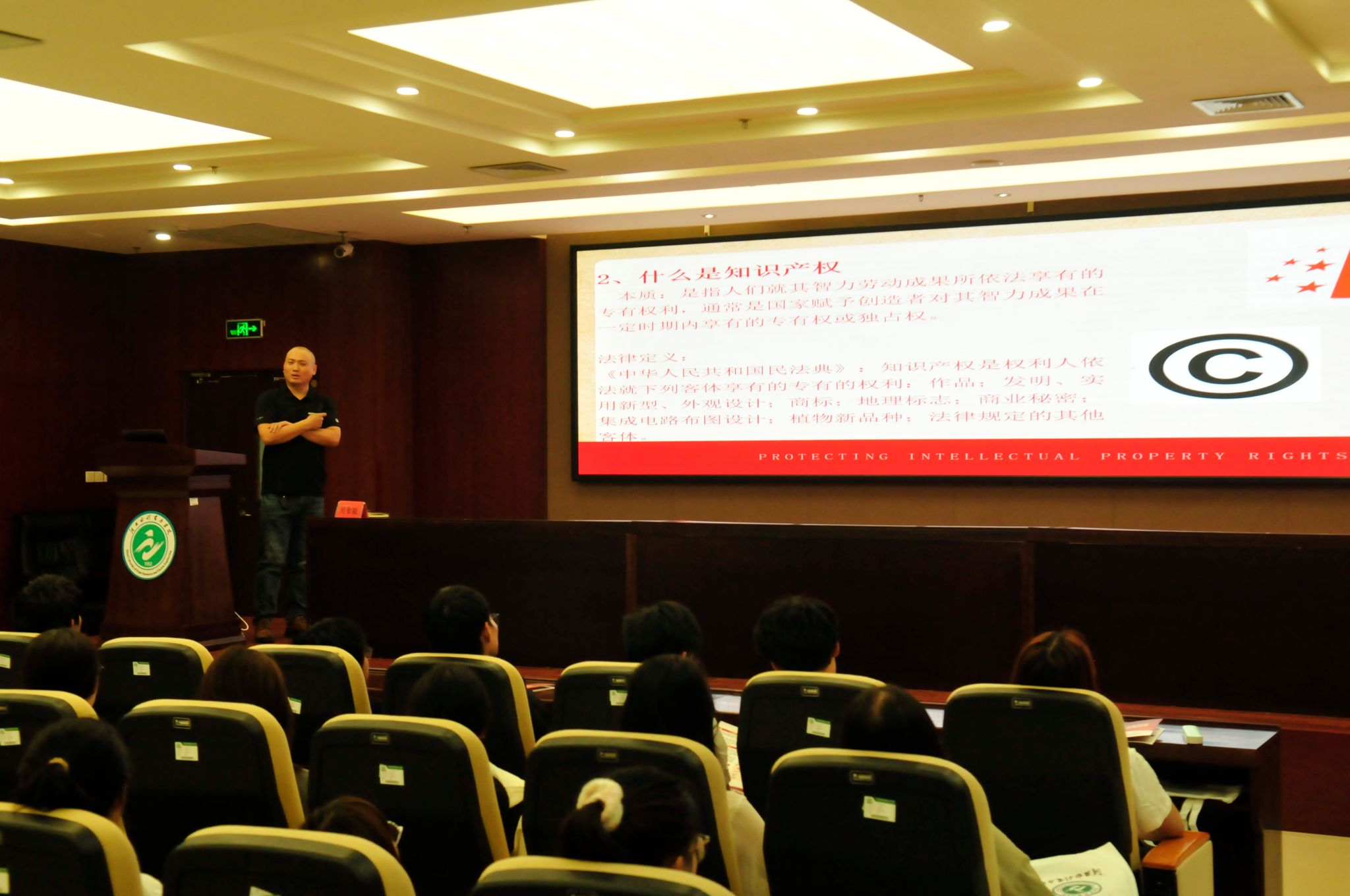 4月26日下午,在第24个世界知识产权日之际,beat365官网在弘文守正楼9楼学术报告厅举行“知识产权专题讲座”,邀请沧州市华阳知识产权代理有限公司资深专家刘智聪老师主讲,100余名师生参加此次活动。