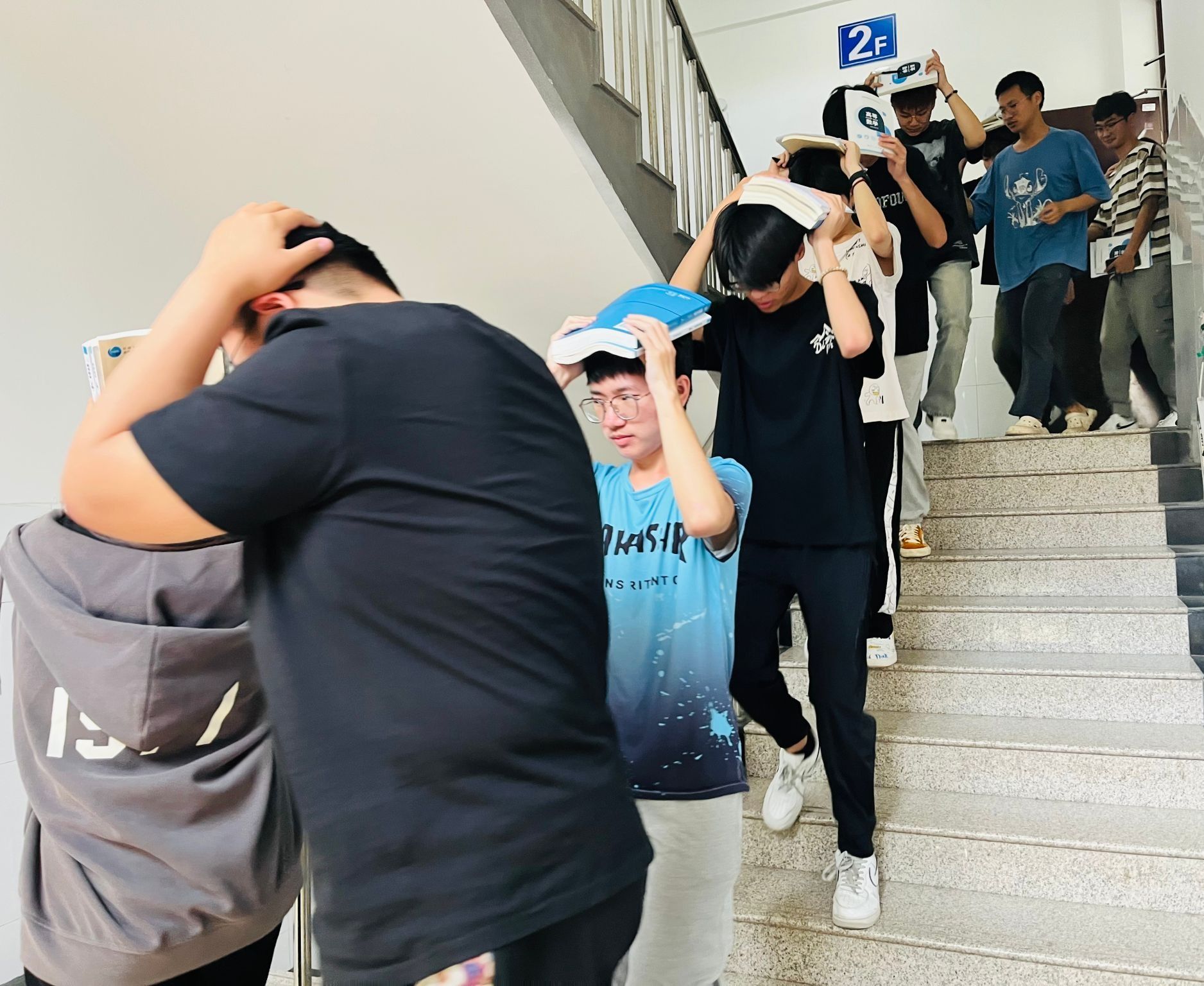 为增强师生的防震减灾意识,掌握应急避震的正确方法,熟悉地震发生时紧急疏散的程序、方式、路线和安全避险区域,强化师生安全意识和地震应急避险及疏散能力,培养自我保护、自救互救、团队协作的基本能力。5月16日中午,安全工作处牵头,联合学生处、后勤管理处、宣传部及土木工程系组织开展了地震逃生疏散演练活动。