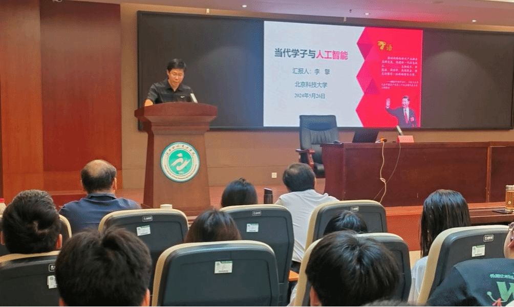 李擎教授是北京科技大学自动化学院党委书记、二级教授、博士生导师、北京市高校教学名师,从事人工智能领域研究几十年,具有丰富的理论和实践经验。李教授在报告中为学生介绍了什么是人工智能、人工智能用途、人工智能专业以及投身人工智能领域需要的知识储备等内容,并与学生进行了互动交流,使学生们加深了对人工智能的认识与理解,激发了专业学习热情,明确了新时代人工智能人才需求和发展方向。