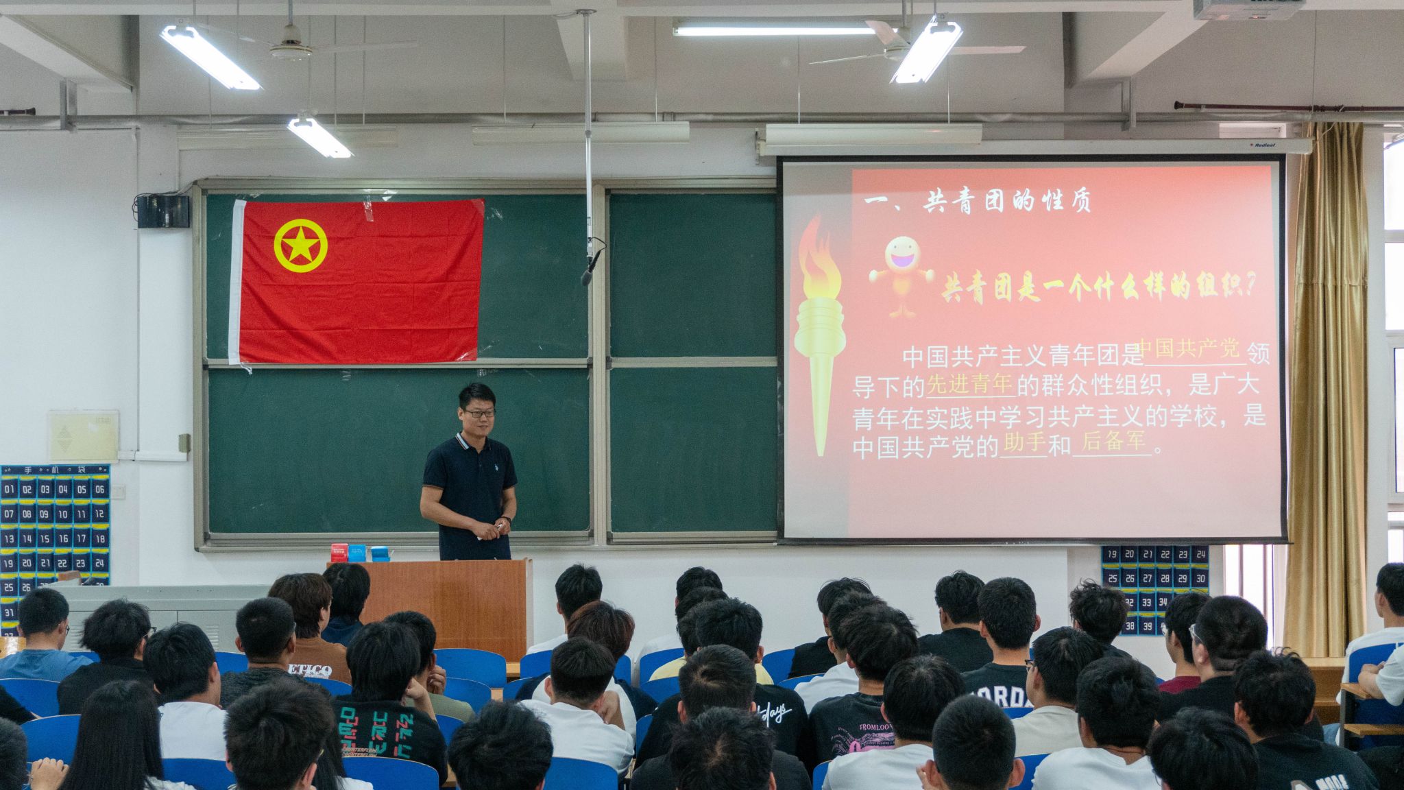 团课上,机械工程系党总支副书记杨学智以“百年团史与青年奋斗”为主题,以青年团的三个主要发展阶段为切入点,从1920年8月社会主义青年团在上海的建立,到1925年1月召开的中国社会主义青年团第三次全国代表大会上“中国共产主义青年团”名字的确定,到现在党的十一届三中全会之后,共青团跟着党走上改革开放道路,焕发新的生机。一百年来,中国共产党领导中华民族复兴伟业劈波斩浪、壮丽远航,中国共青团团结带领一代代中国青年奋勇争先,在党的事业和民族复兴征程中,书写了无上的青春荣光。