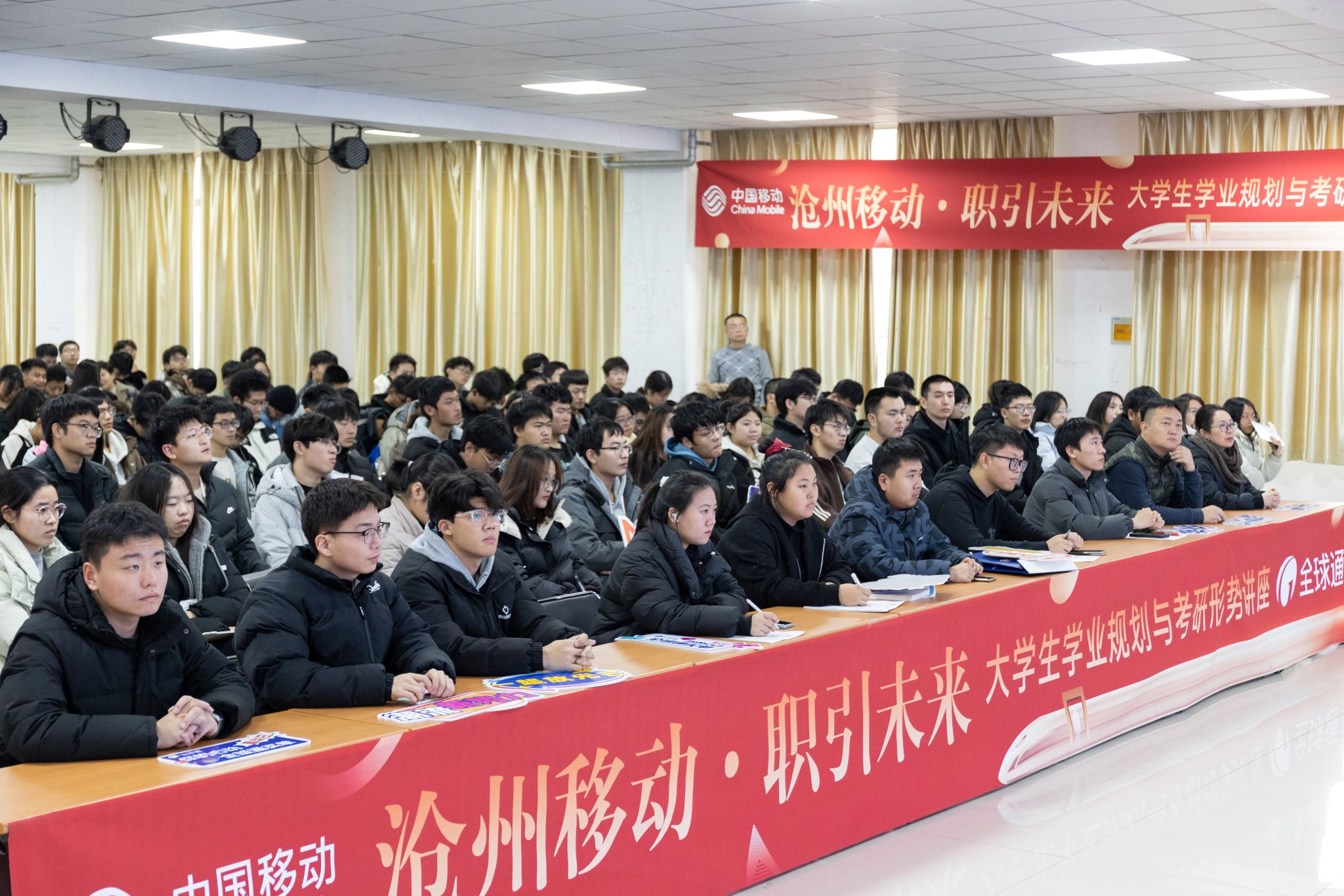 为帮助beat365官网学生明确学业目标,制定合理的考研规划,学生处联合沧州移动特邀学业规划专家于12月12日下午在启智楼学生活动室举办“学业规划与考研形势分析”讲座。共计250余名学生参加此次讲座。