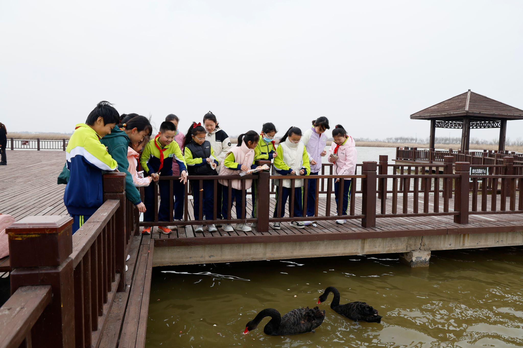 活动中,学生们化身“湿地科考员”,分组开展鸟类观测与植物辨识。“以前总觉得湿地就是一片水塘,今天才知道它是这么多动植物的家园!”参与活动的同学感慨道,“我们要把今天学到的知识带回校园,让更多人明白守护湿地就是守护每一滴水的生命旅程。”上海路小学和黄河路小学的带队老师也纷纷表示:“这种‘做中学’模式让生态教育真正活起来,孩子们自发讨论湿地退化成因时迸发的思维火花,正是我们最希望看到的。”