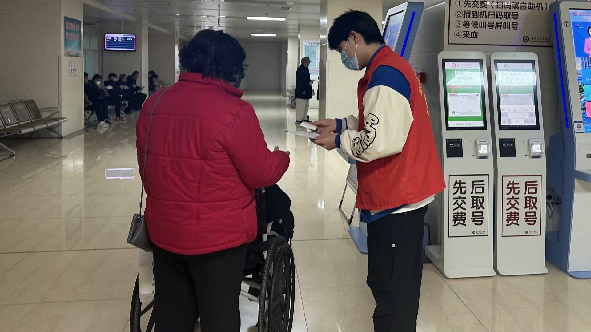 活动期间,志愿者们首先接受了医院工作人员细致的岗前培训,学习了医院规章制度、科室分布、基本医疗常识以及沟通技巧等内容。培训结束后,志愿者们迅速投入到各自的岗位中他们有的在自助挂号机前耐心指导患者操作,有的在候诊区与患者亲切交流,还有的在综合服务中心维持秩序服务结束后,志愿者们化身“就医体验官”,从患者视角提出流程优化建议,填写门诊反馈表格,为医院服务改进提供帮助。