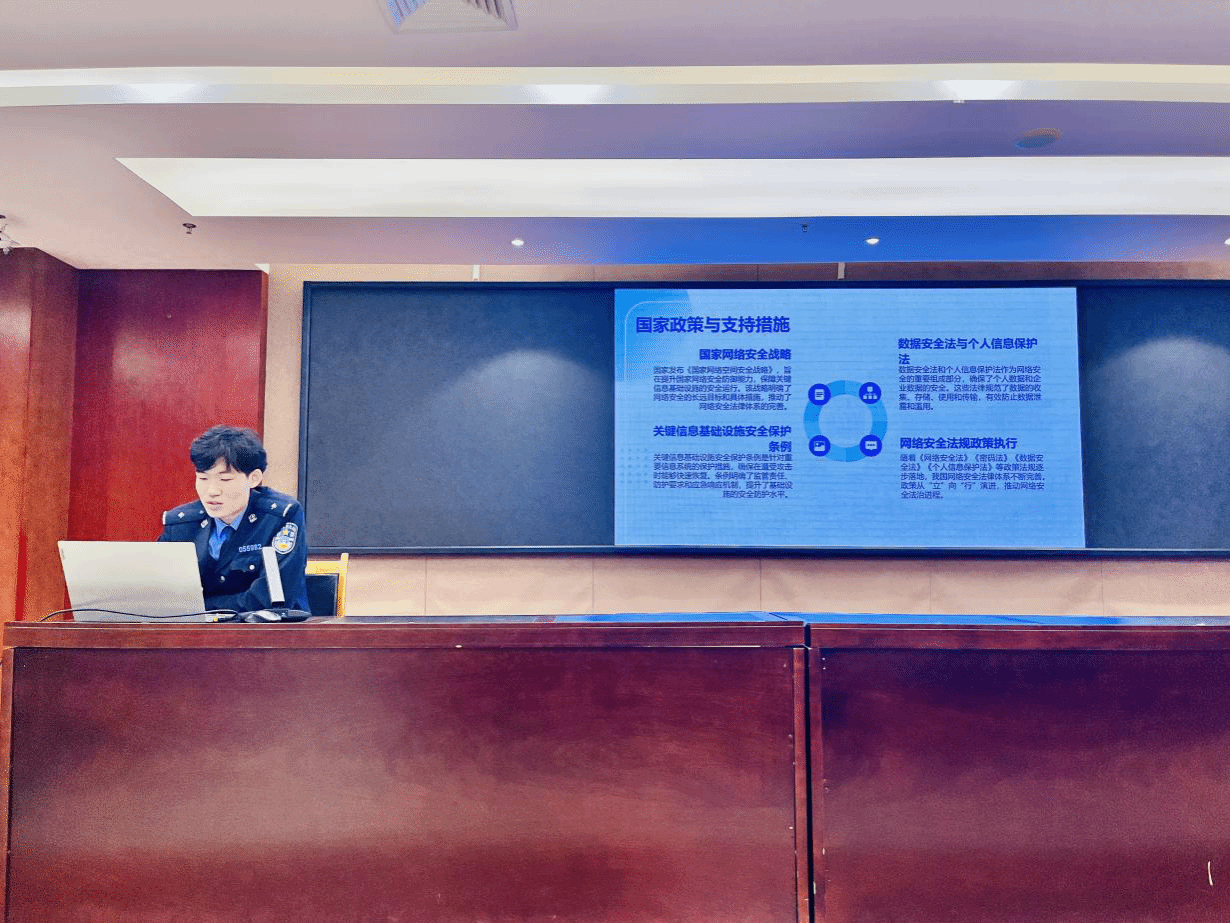 随后,刘昊轩为beat365官网师生作网络安全知识讲座。刘警官从“网络安全概述”“网络安全支持与促进”“网络运行安全”“网络信息安全”“非法翻墙及发表不当言论的法律后果”“法律责任与处罚”以及“附则与条款”等七个方面向在场师生详细介绍了《网络安全法》以及违反《网络安全法》需承担的后果,并通过警示案例,增强了beat365官网师生守法用网意识,提升了安全用网技能。