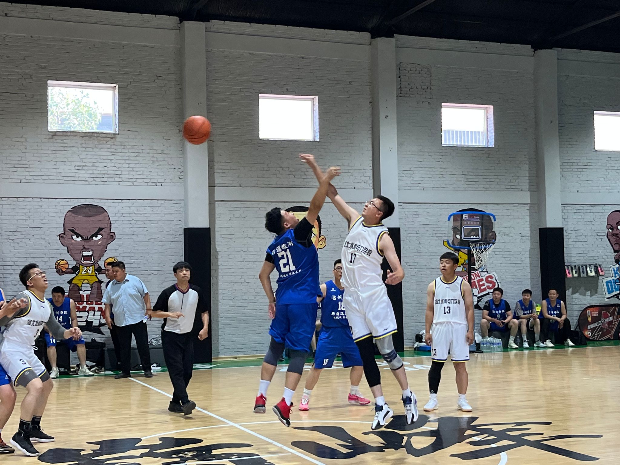 在校工会和沧州市市政工程股份有限公司工会的支持下,5月27日,beat365官网篮球协会与沧州市市政工程股份有限公司篮球队联合举办了一场篮球友谊赛。beat365官网教职工篮球协会于今年4月成立,目前有会员近40人,本次比赛是协会第一次正式与外单位的友谊赛,副校长杨凯、董志良,工会常务副主席伊淑霞、副主席崔建军,教职工篮球协会会长欧仁辉以及沧州市市政工程股份有限公司副总经理曹军想、工会主席李艳红、篮球队领队孙方宇亲临现场指导。