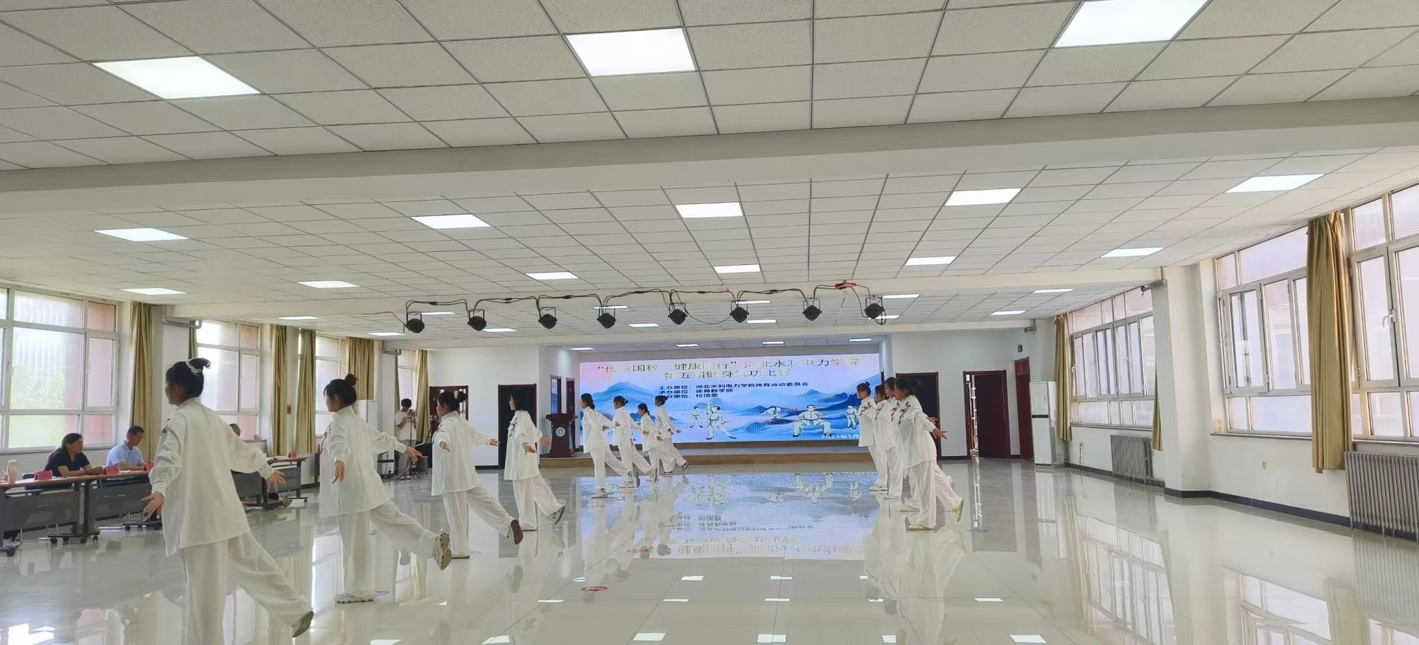 传统体育绽风采,青春活力谱新篇,beat365官网于近日在启智楼B402成功举行了第五届健身气功比赛。本届赛事由校体育教学部主办、校团委协办,吸引了全校八个系共计370余名学子同台竞技。