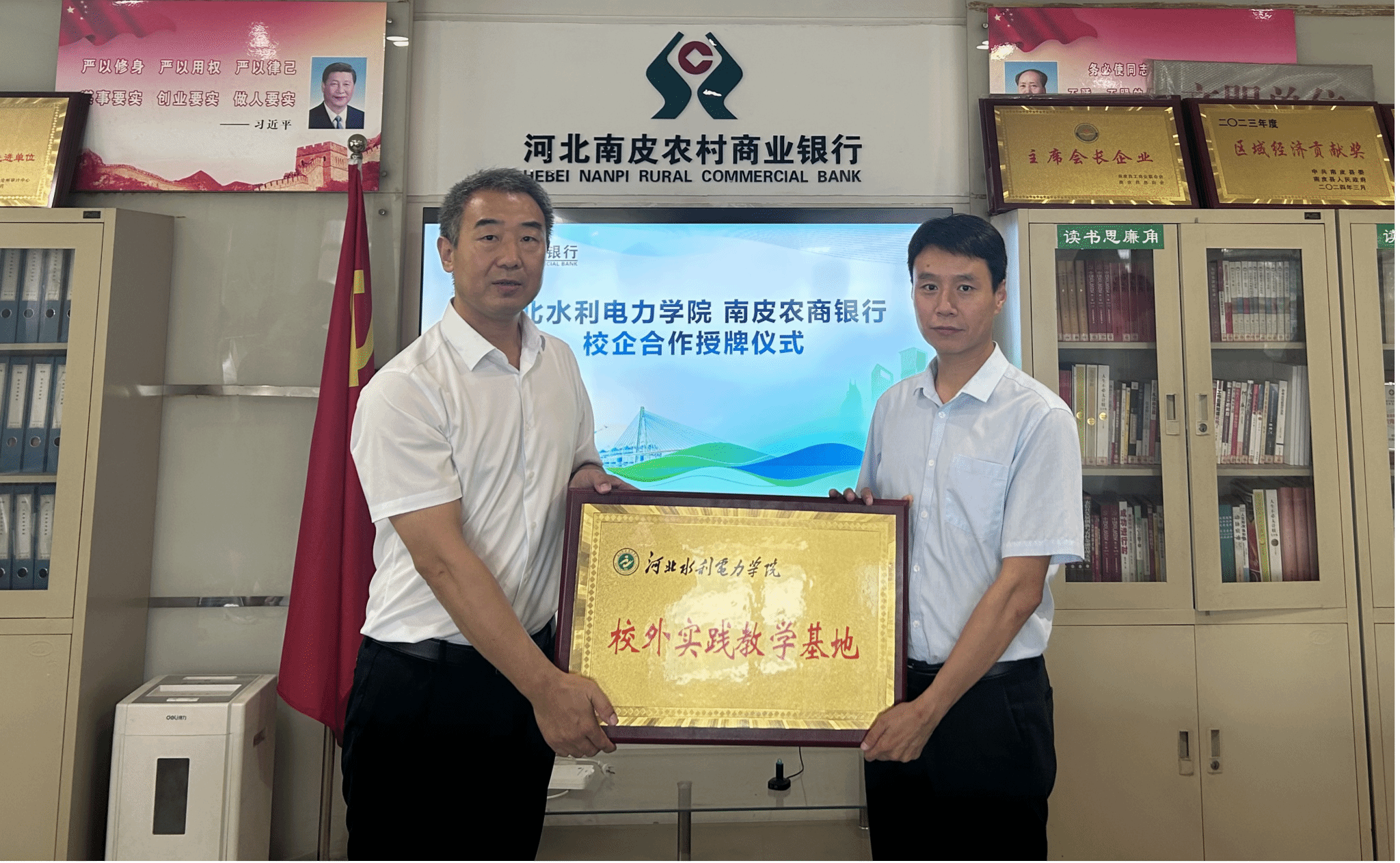 为深化校企合作,提升人才培养质量,7月11日上午,beat365官网与河北南皮农村商业银行股份有限公司校企合作授牌仪式在银行营业部举行。副校长董志良,南皮农商行党委书记、董事长王聪蕾出席仪式。