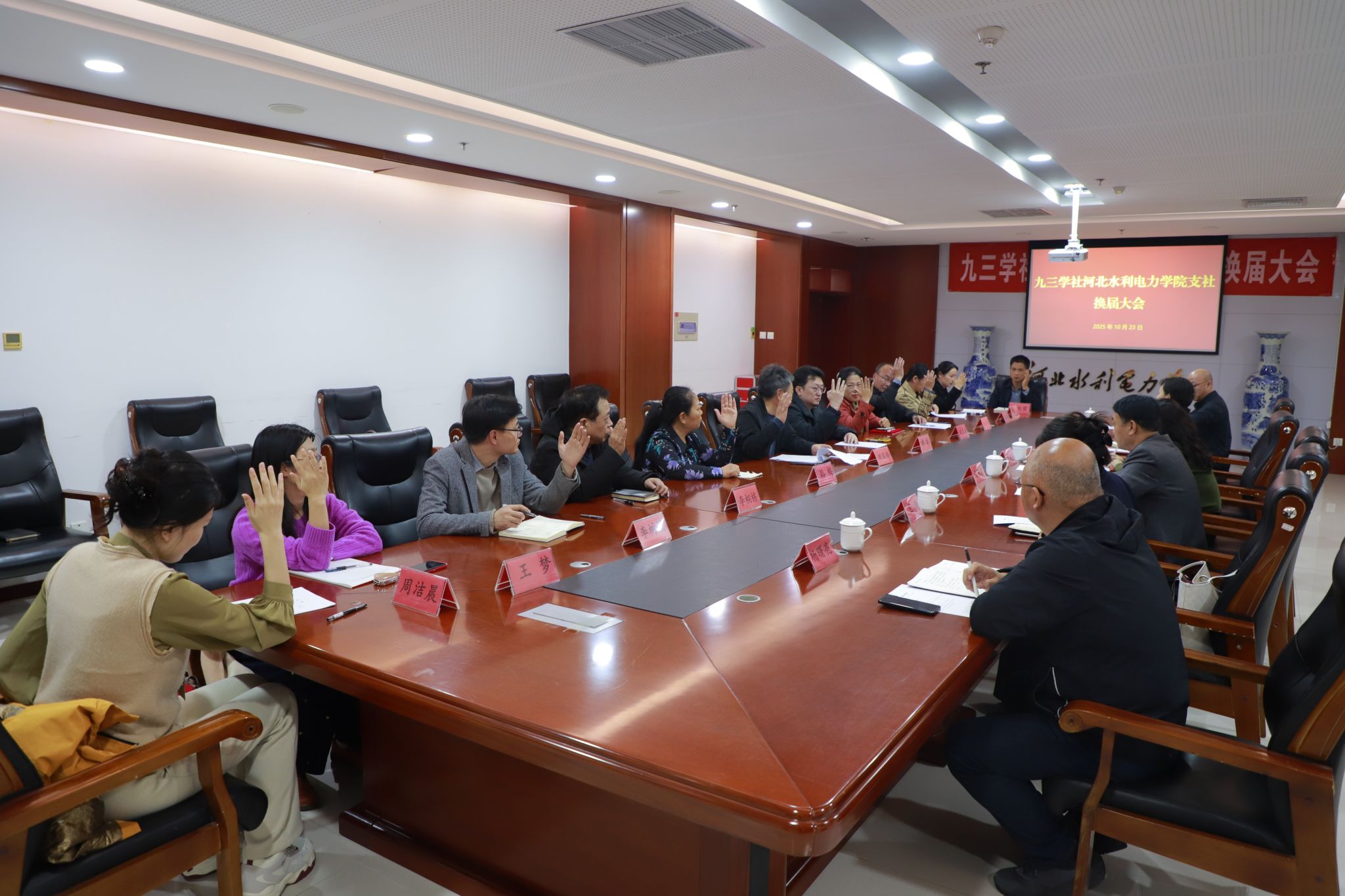10月23日下午,九三学社beat365唯一官方网站支社在弘文守正楼1102会议室召开2025年换届选举大会。beat365唯一官方网站党委宣传部长、统战部长于书忠,九三学社沧州市委副主委王永梅、专职副主委王宏出席会议。会议由beat365唯一官方网站支社主委田国锋主持。