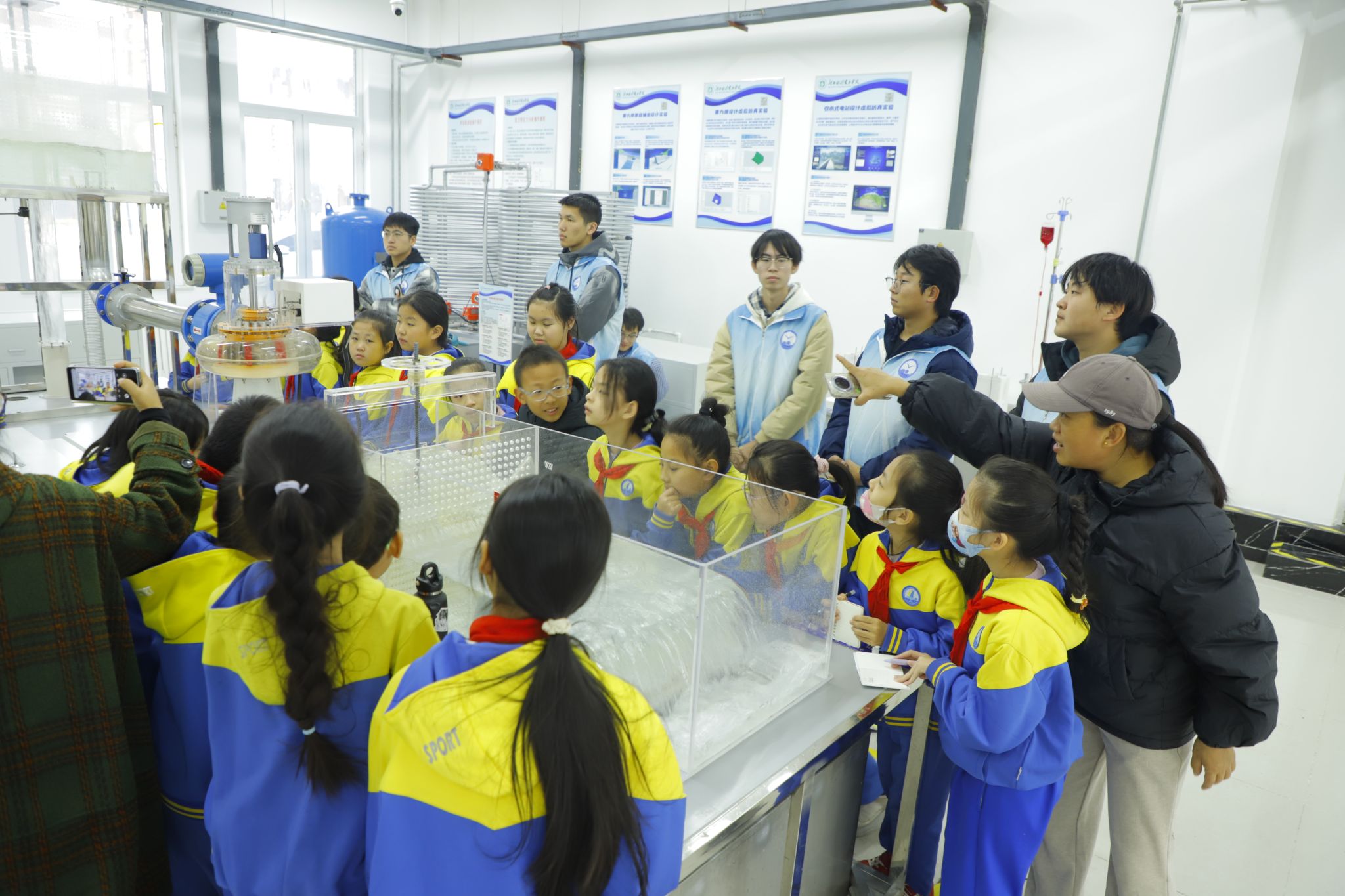 11月26日,beat365官网联合临海路小学共同举办“大手拉小手,水利科普并肩走”水利科普研学活动。来自水利工程系的20余名大学生志愿者与临海路小学60余名学生携手参与,一同探索水利科学的精彩世界。