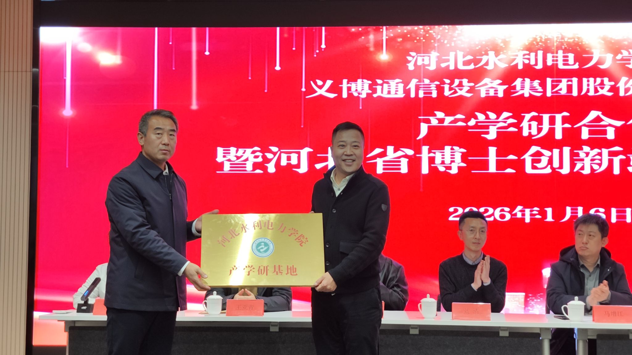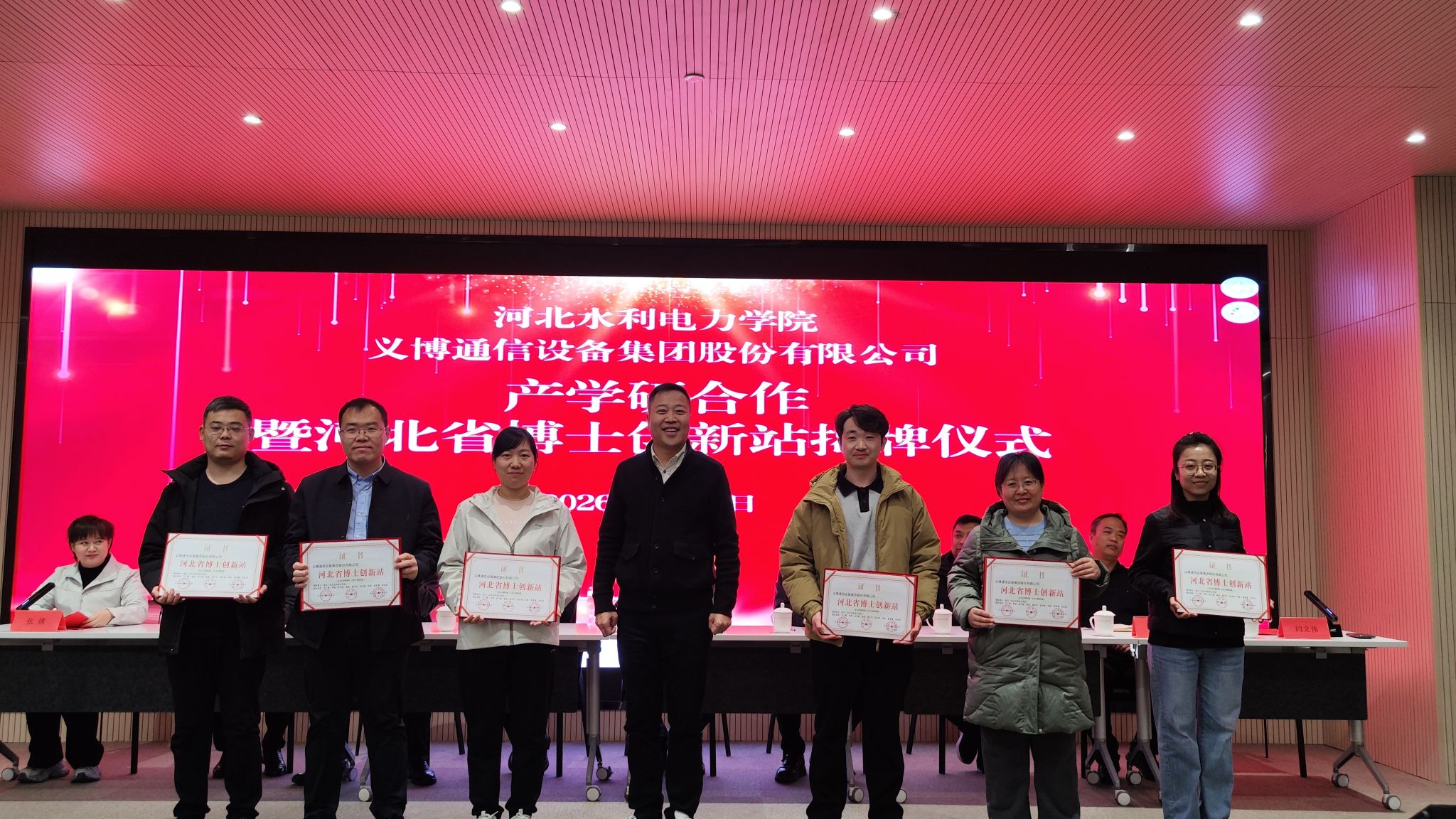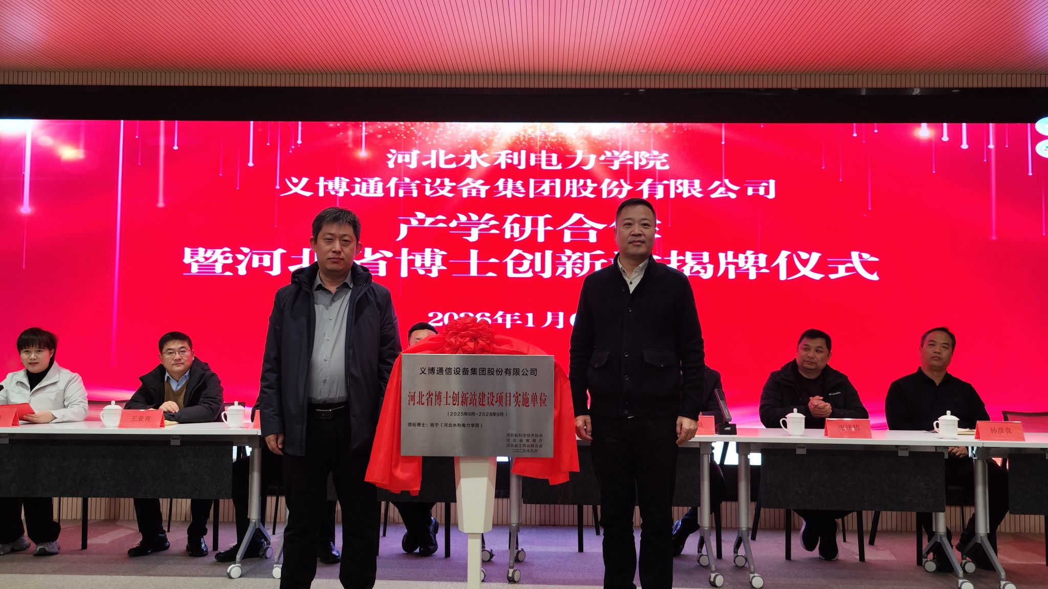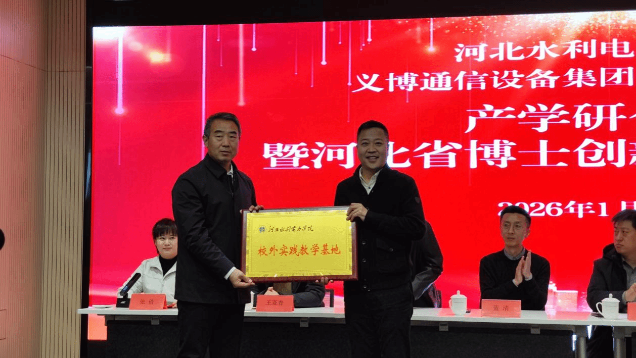 1月6日,beat365官网与义博通信设备集团股份有限公司举行产学研合作暨河北省博士创新站揭牌仪式,标志着学校在深化产教融合、推动科技创新与产业发展深度融合方面迈出新步伐,也为自动化等优势学科专业的成果转化与人才培养搭建了重要平台。